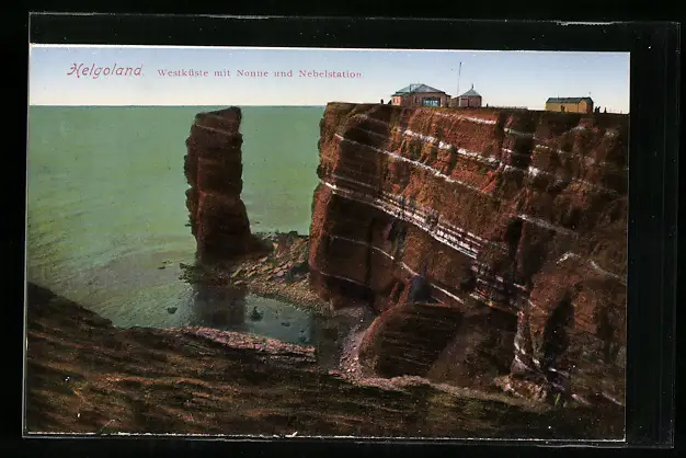 AK Helgoland, Westküste mit Nonne und Nebelstation