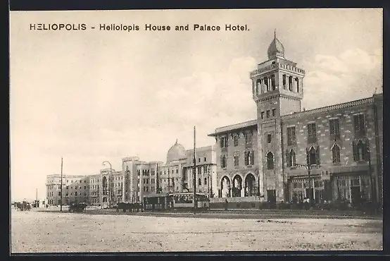 AK Heliopolis, Heliolopis House and Palace Hotel, Strassenbahn