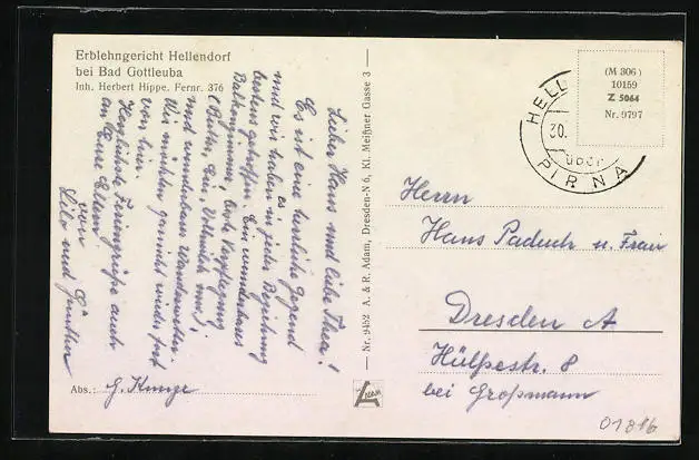 Weitere Ansichtskarten zur Postleitzahl 01816