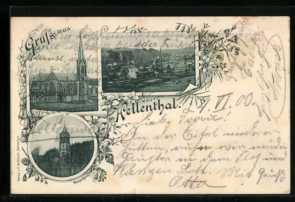AK Hellenthal, Ortsansicht mit Glockenthurm