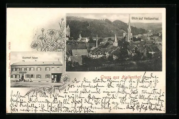 AK Hellenthal, Totalansicht mit Gasthof Felser