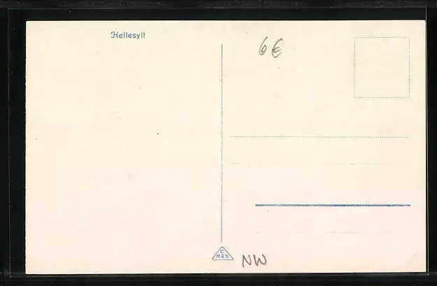 Personenbezogene Daten auf der Rückseite der Karte wurden durch blauen Textmarker unkenntlich gemacht. Die blauen Stellen sind auf die Vorderseite durchgeweicht und wirken sich negativ auf das Postkartenfoto aus