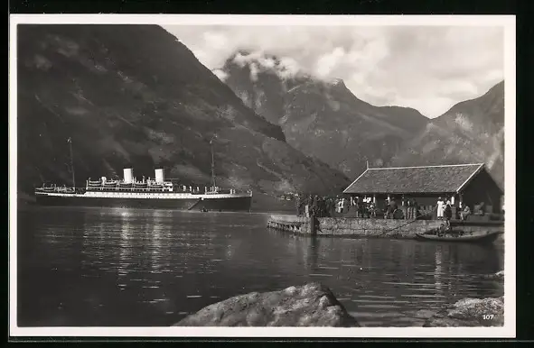 AK Hellesylt, Partie am Norangsfjord, Kreuzfahrtschiff