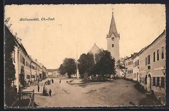 AK Hellmonsödt, Hauptplatz mit Kirche