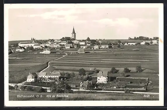 AK Hellmonsödt /O. D., Panorama mit Kirche