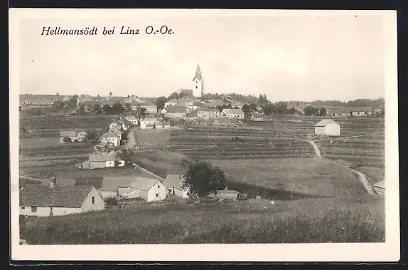 AK Hellmonsödt bei Linz, Teilansicht mit Kirche