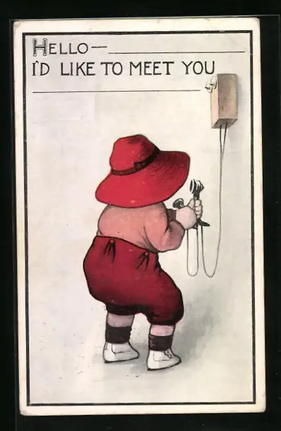 AK Hello I`d like to meet your, Kleiner Junge am Telefon