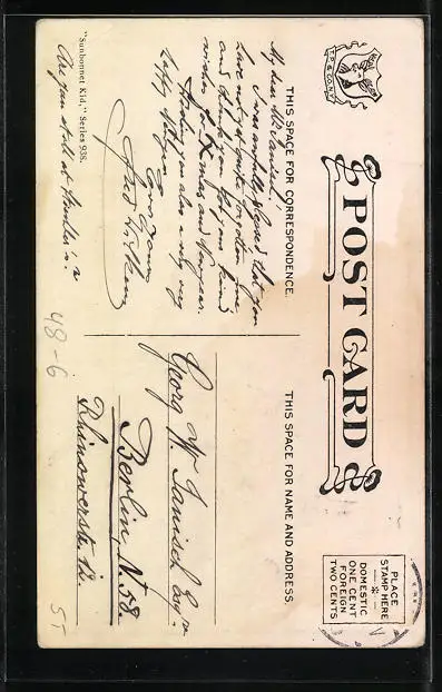 alte Ansichtskarte, gelaufen, Briefmarke entfernt, Eckknick re. oben, Bugspuren li. oben u. unten, guter Zustand