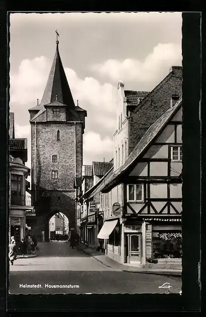 AK Helmstedt, Hausmannsturm mit Strassenpartie