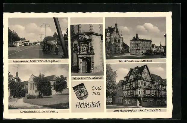 AK Helmstedt, Marktplatz, Innengrenze Westlicher Schlagbaum, Wappen