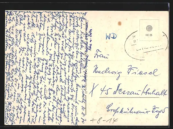 alte Ansichtskarte, gelaufen 1970, Briefmarke entfernt, guter Zustand