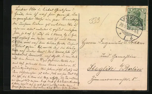 alte Ansichtskarte, gelaufen 1909, guter Zustand