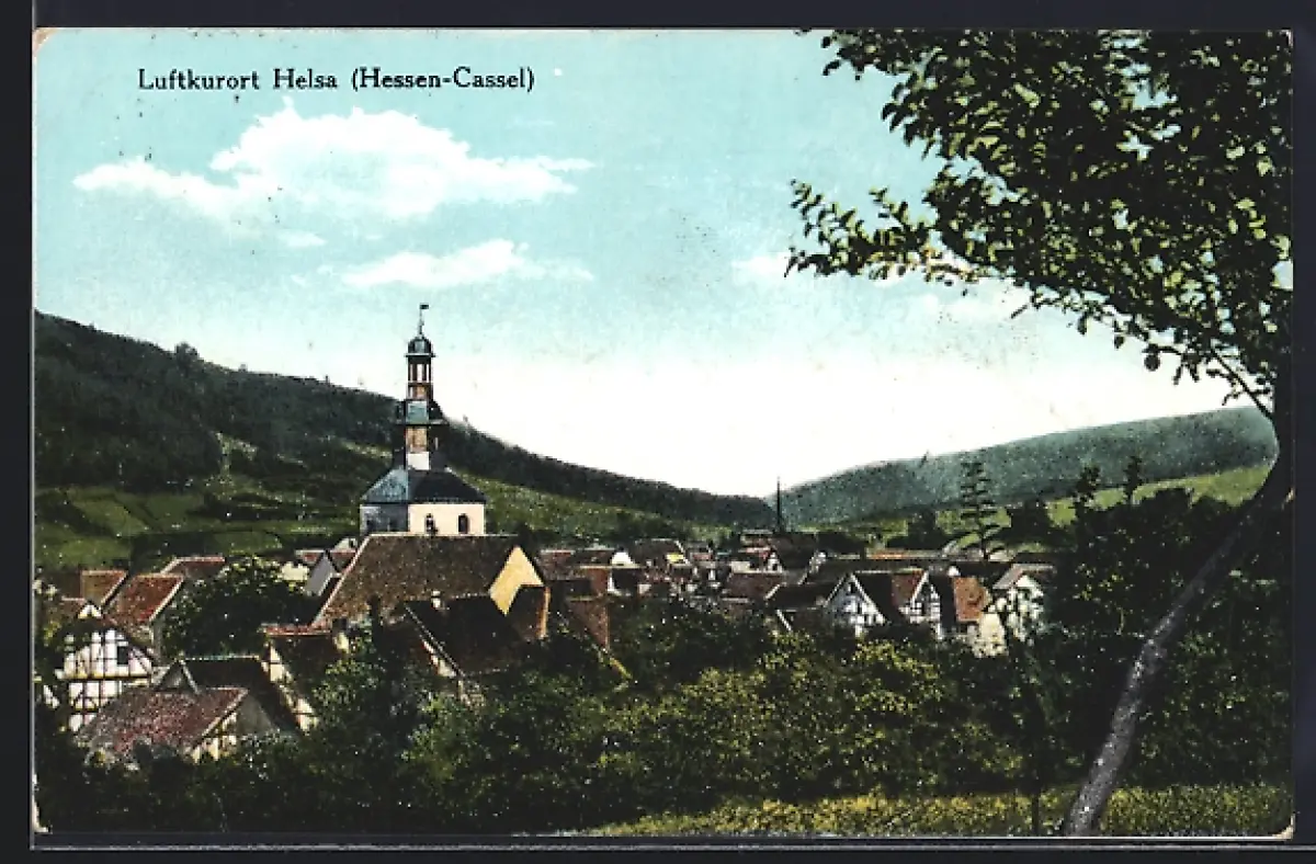 AK Helsa /Hessen-Cassel, Ortsansicht mit Kirche