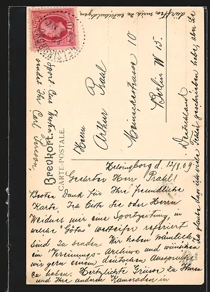 alte Ansichtskarte, gelaufen 1909, Eckknick li. oben, guter Zustand