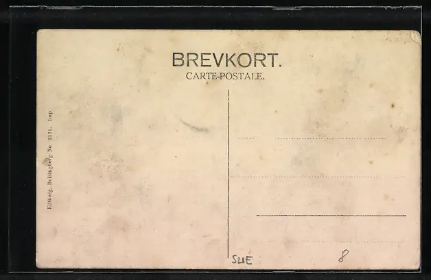 Personenbezogene Daten auf der Rückseite der Karte wurden durch blauen Textmarker unkenntlich gemacht. Die blauen Stellen sind auf die Vorderseite durchgeweicht und wirken sich negativ auf das Postkartenfoto aus