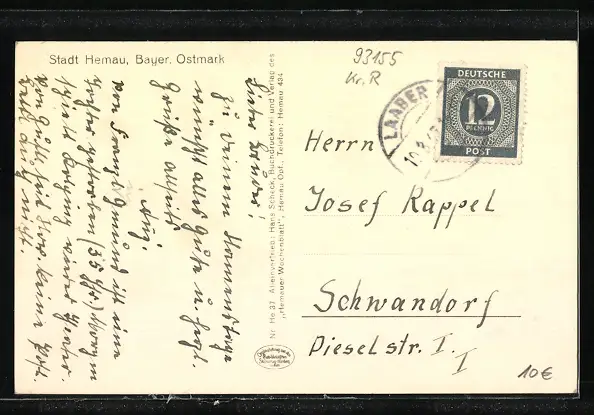 Weitere Ansichtskarten zur Postleitzahl 93155