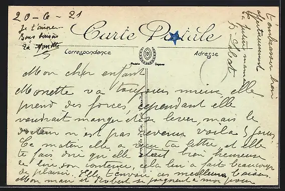 ungelaufen, Rückseite beschrieben 1921, guter Zustand