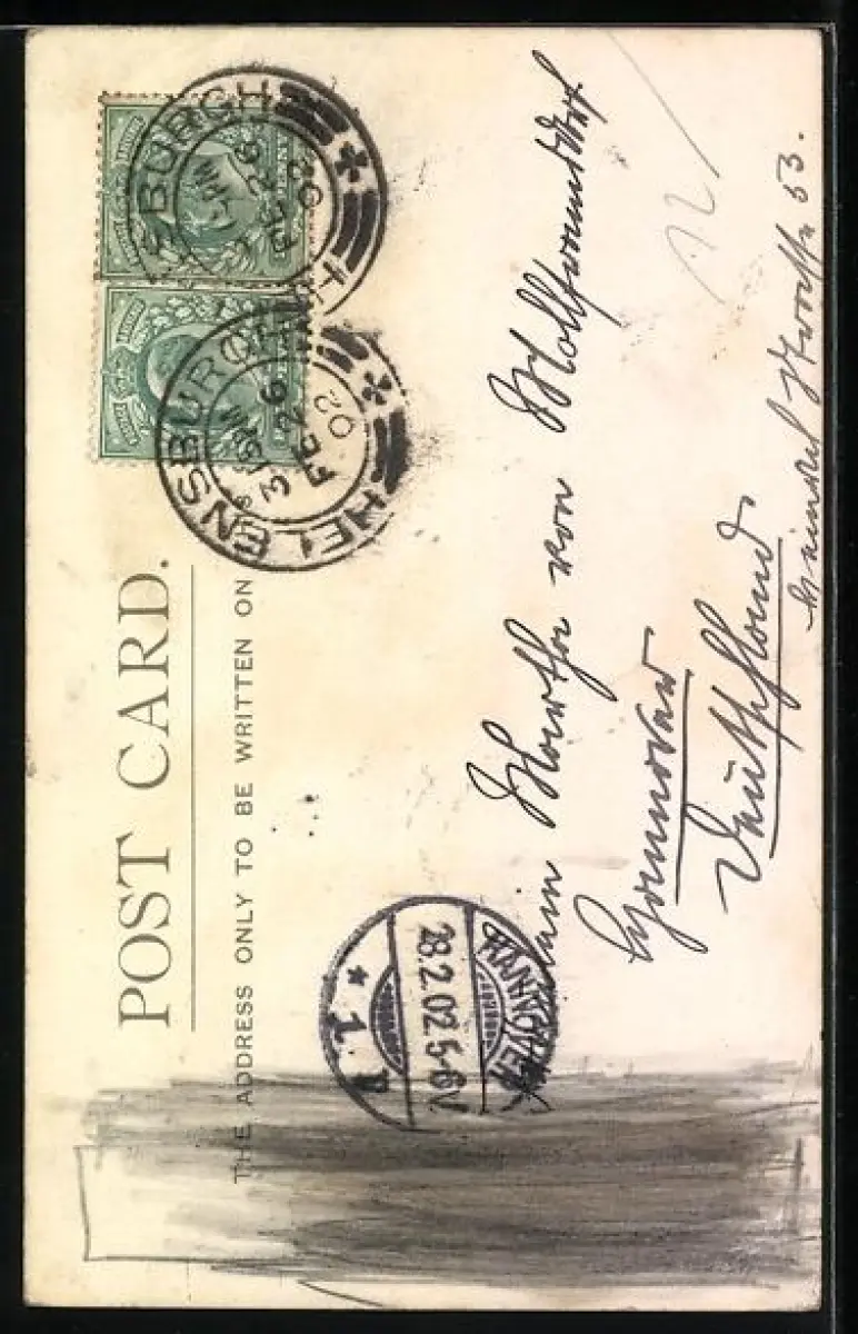 alte Ansichtskarte, gelaufen 1902, Stempelspur, Eckknick rechts oben, guter Zustand