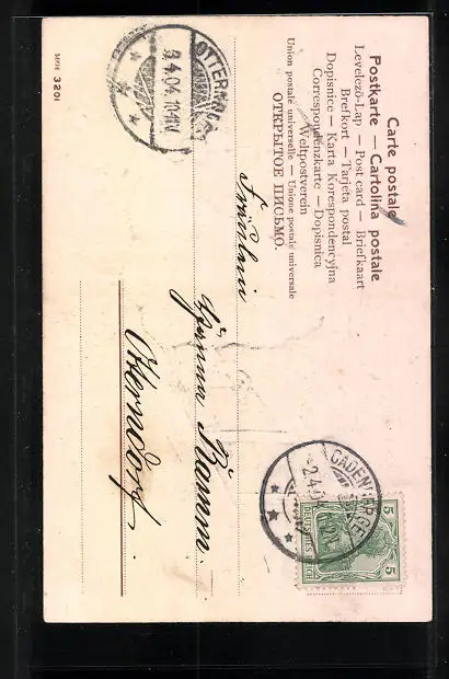 alte Ansichtskarte, gelaufen 1904, guter Zustand