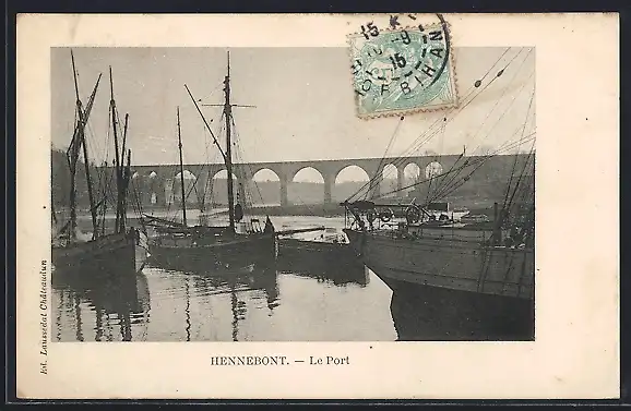 AK Hennebont, Le Port et le viaduc en arrière-plan