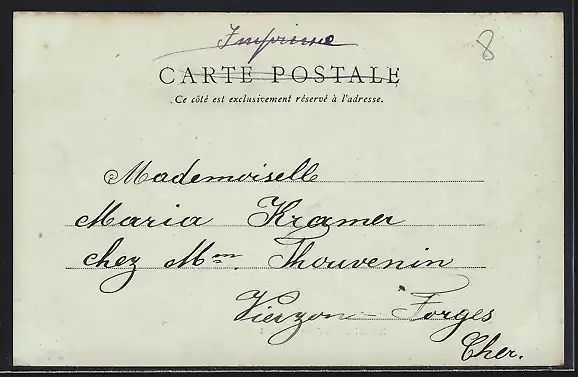 Personenbezogene Daten auf der Rückseite der Karte wurden durch blauen Textmarker unkenntlich gemacht. Die blauen Stellen sind auf die Vorderseite durchgeweicht und wirken sich negativ auf das Postkartenfoto aus