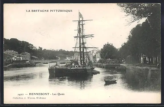 AK Hennebont, Les Quais avec un voilier sur la rivière