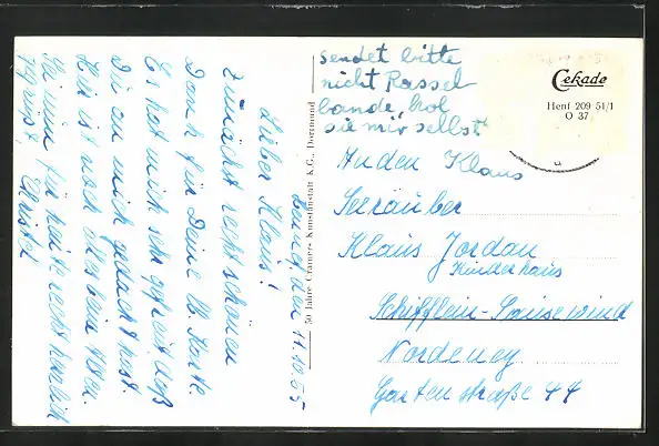 alte Ansichtskarte, gelaufen 1955, Briefmarke entfernt, guter Zustand