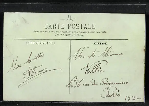 Personenbezogene Daten auf der Rückseite der Karte wurden durch blauen Textmarker unkenntlich gemacht. Die blauen Stellen sind auf die Vorderseite durchgeweicht und wirken sich negativ auf das Postkartenfoto aus