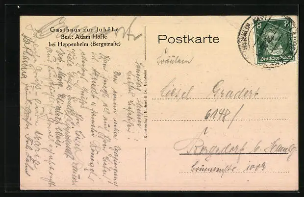 AK Heppenheim, Gasthaus zur Juhöhe, Adam Höfle, Bergstrasse