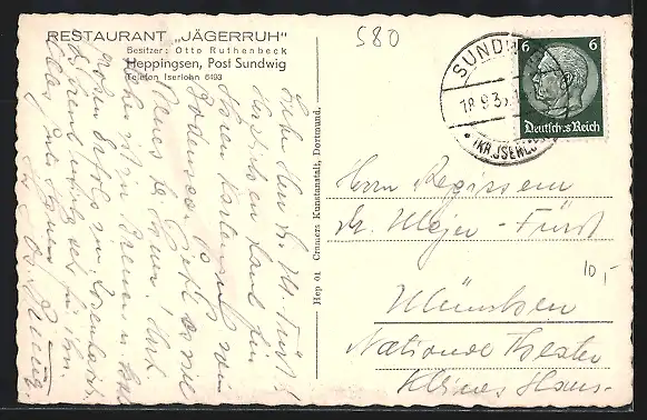 AK Heppingsen /Sundwig, Restaurant Jägerruh, Bes. Otto Ruthenbeck