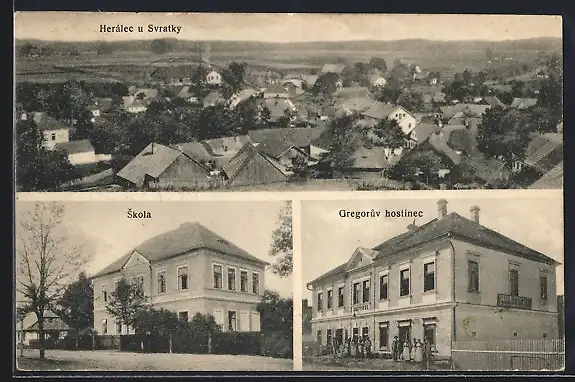 AK Herálec u Svratky, Skola, Gregoruv Hostinec, Panorama