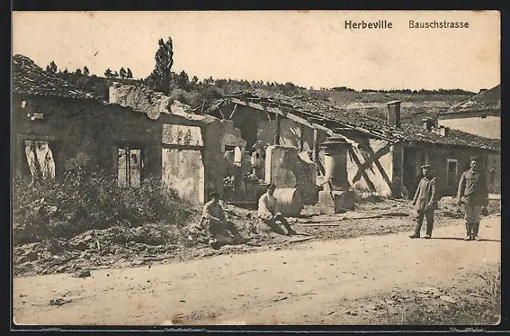 AK Herbeville, Bauschstrasse mit zerstörten Häusern