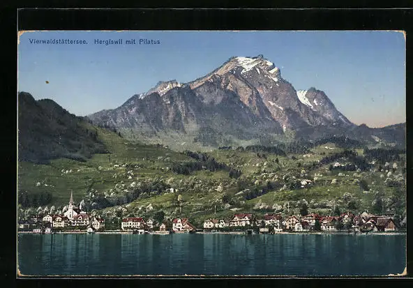 AK Hergiswil, Gesamtansicht mit Pilatus am Vierwaldstättersee