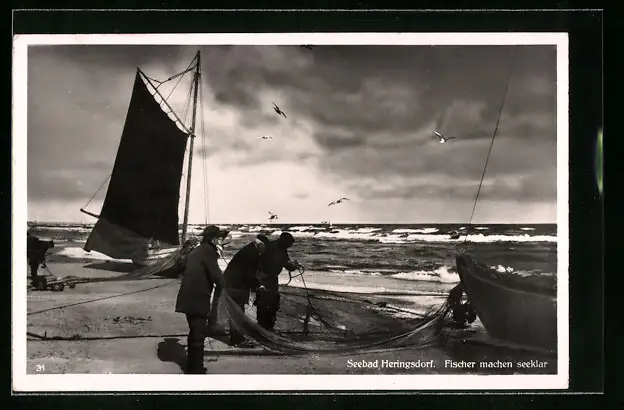 AK Heringsdorf, Fischer am Strand des Seebades
