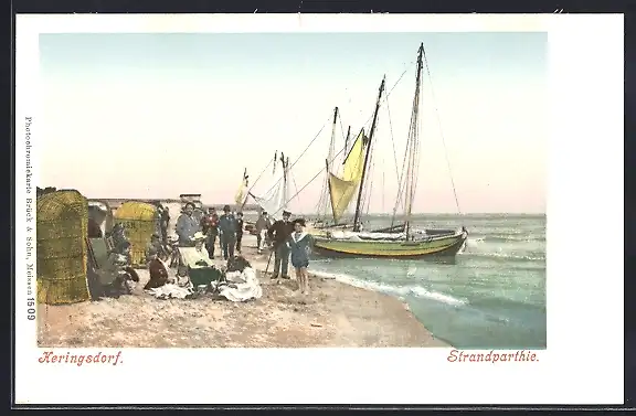 AK Heringsdorf / Ostseebad, Strandpartie mit Segelboten und Strandkörben