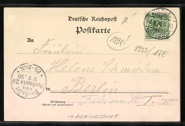 alte Ansichtskarte, gelaufen 1898, Stempelspur, guter Zustand
