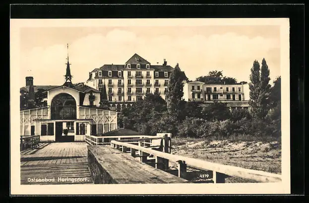 AK Heringsdorf / Usedom, Strandpartie mit Brücke