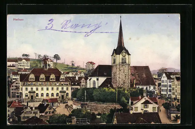 AK Herisau, Kirche mit Wohnhäusern