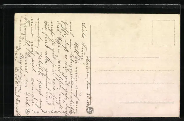 Personenbezogene Daten auf der Rückseite der Karte wurden durch blauen Textmarker unkenntlich gemacht. Die blauen Stellen sind auf die Vorderseite durchgeweicht und wirken sich negativ auf das Postkartenfoto aus