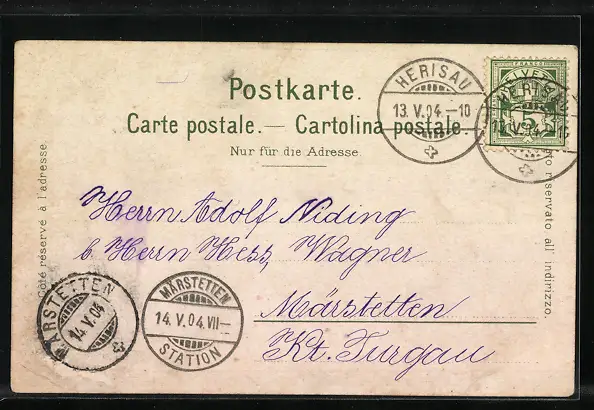 alte Ansichtskarte, gelaufen 1904, Stempelspur, Eckknick re. unten, guter Zustand