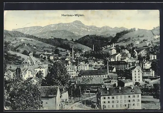 AK Herisau, Wylen, Teilansicht mit Bergpanorama aus der Vogelschau