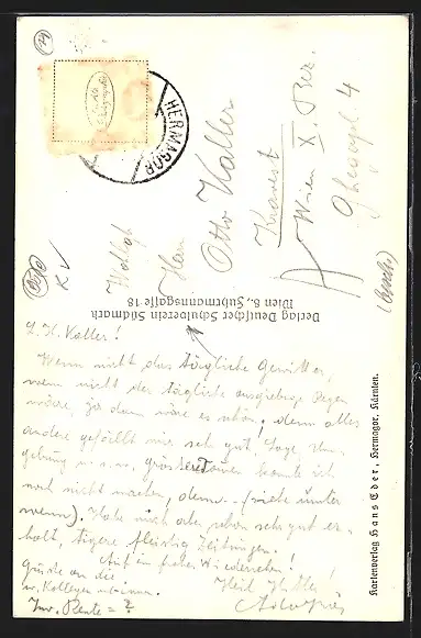 alte Ansichtskarte, gelaufen, Briefmarke entfernt, guter Zustand
