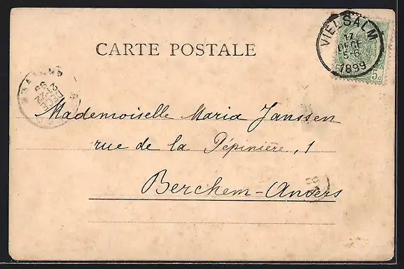 alte Ansichtskarte, gelaufen 1899, Eckknick li. oben, Stempelspur, guter Zustand