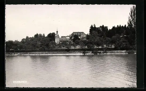 AK Hermance, Ortsansicht mit Gewässer und Kirche