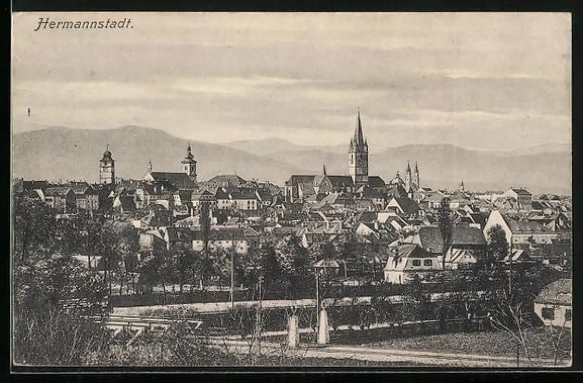 AK Hermannstadt, Blick in den Ort