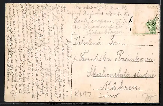 alte Ansichtskarte, gelaufen, Briefmarke entfernt, rückseitig Oberflächenschaden, guter Zustand