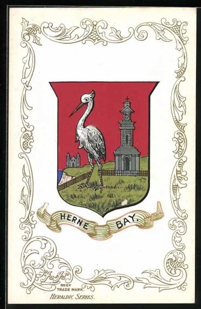 AK Herne Bay, Wappen und Ornament-Rahmen