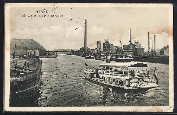 AK Herne, Hafen und Zeche Friedrich der Grosse