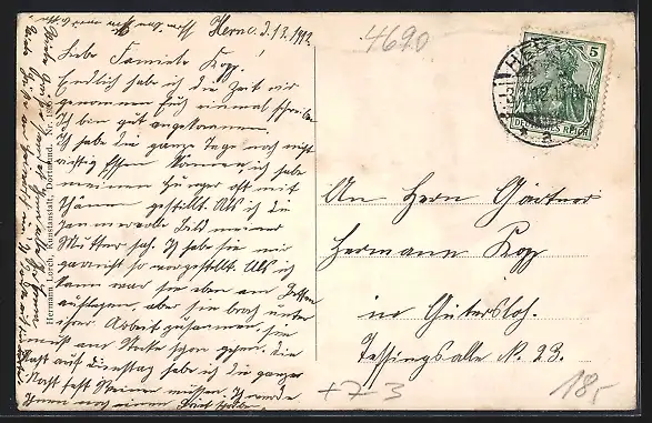 gelaufen 1912, Eckknicke li. oben und re. unten, guter Zustand