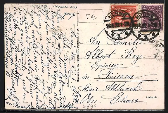 alte Ansichtskarte, gelaufen 1922, Eckknick li. unten, guter Zustand